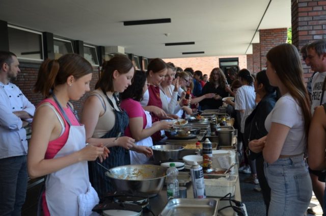 Es herrschte eine fröhliche Stimmung bei bestem Sommerwetter auf dem Schulhof des Berufskolleg Lise Meitner (bklm). Mit einem sportlichen Impuls zu mo